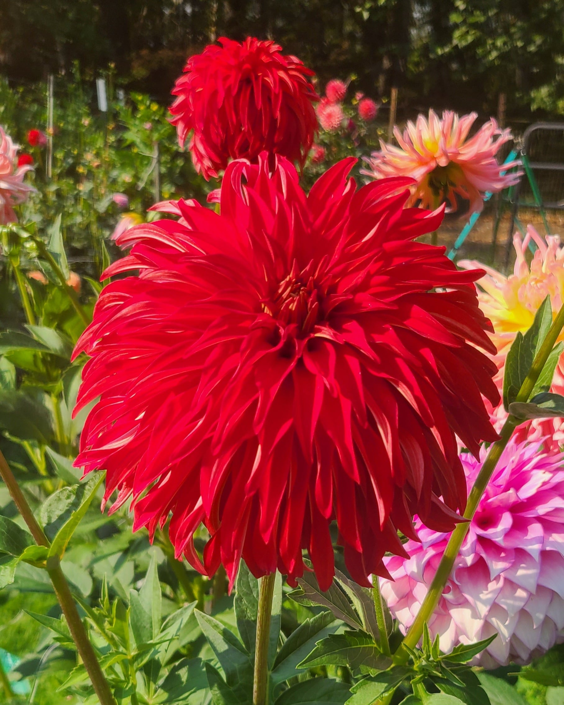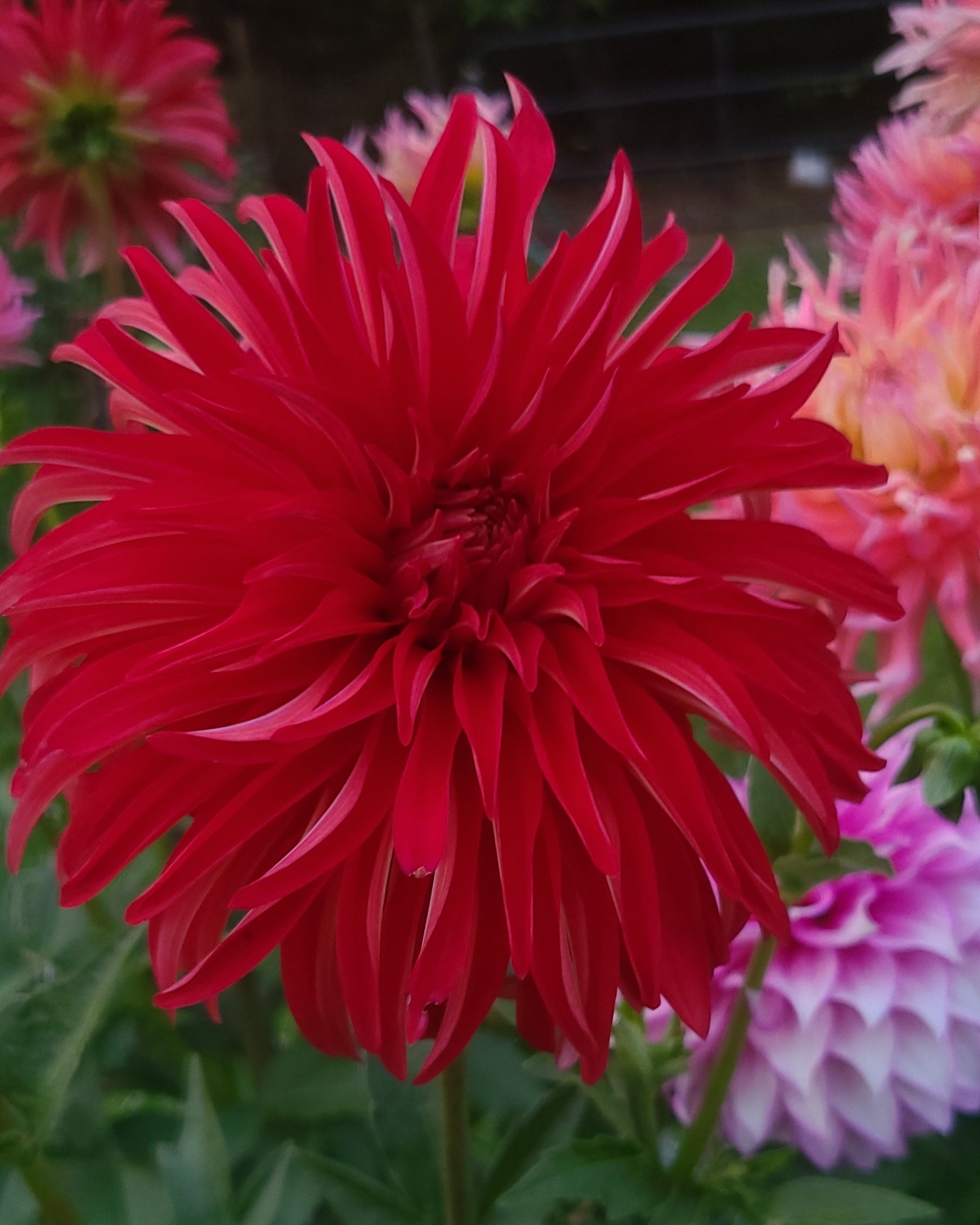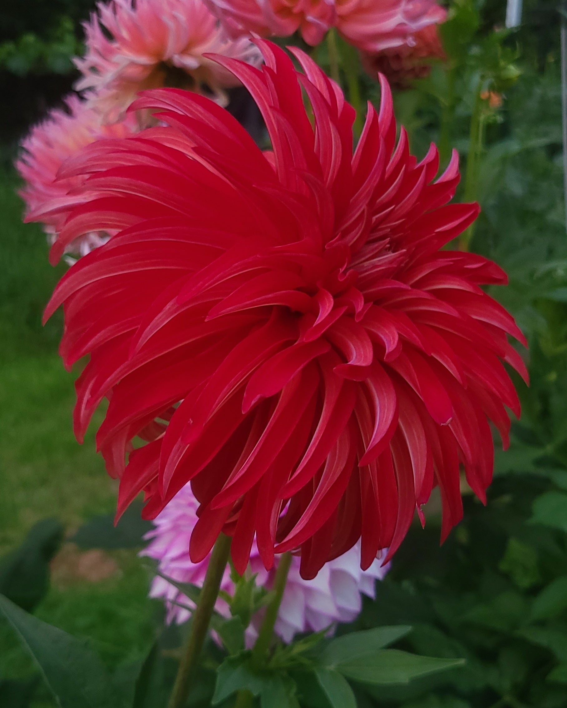 A beautiful brick red Stellar form size 4-6" AC Rooster lives up to it's name, looking like the flowing hackles of a rooster. New to me in 2025 it does not disappoint, giving plenty of gorgeous blooms in it's first year here.