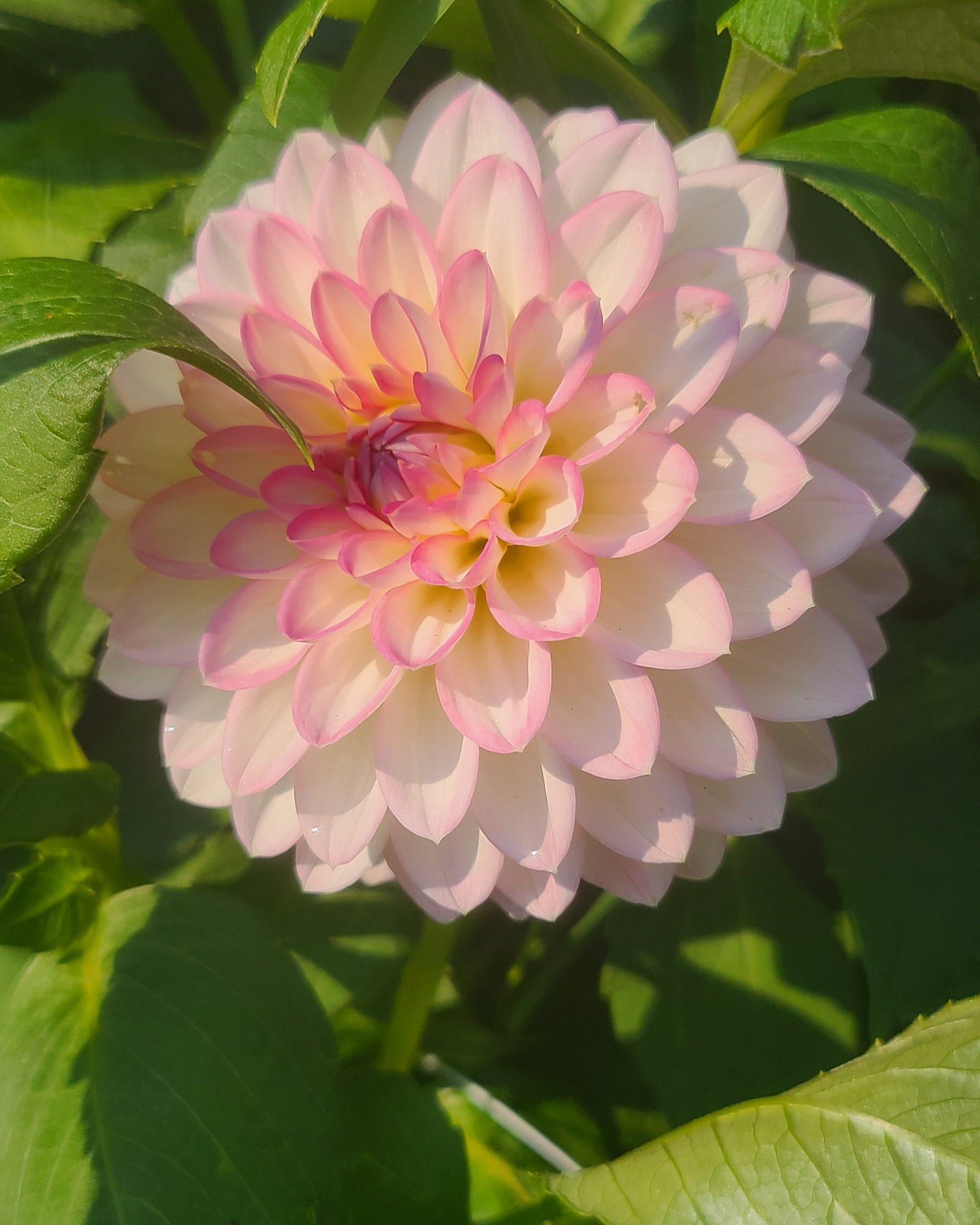 A lovely small decorative Dahlia that has a white base, with a pink edge on each petal. It is really a pretty thing and pairs so beautifully with other pink or white dahlias.