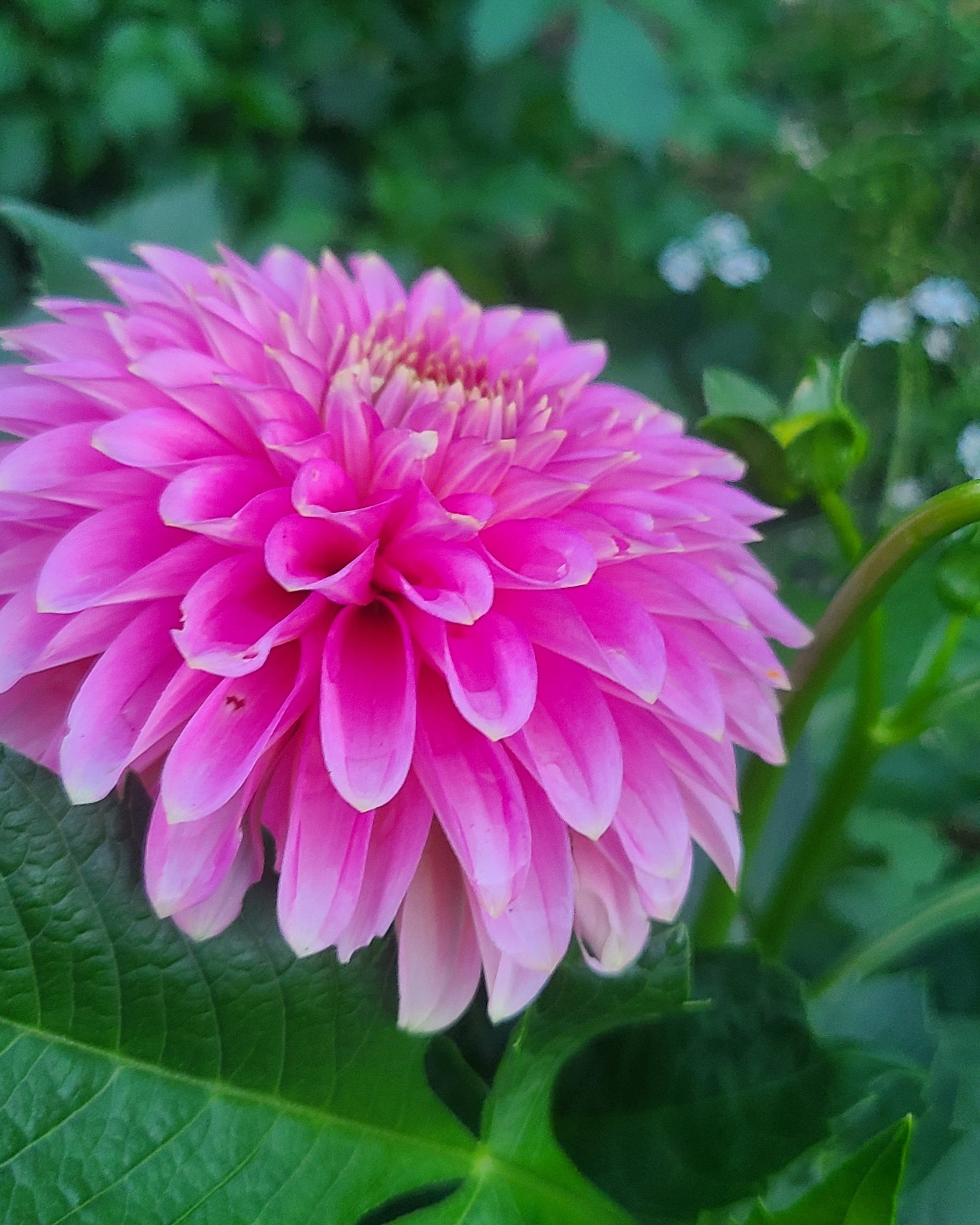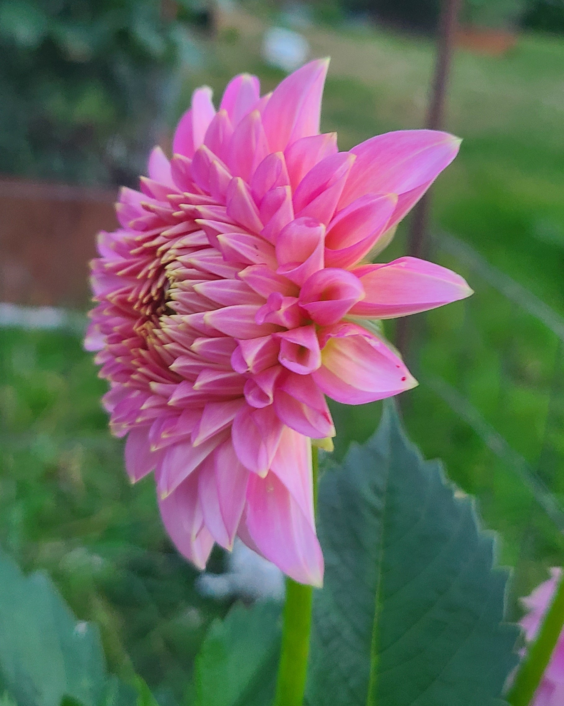 Lavender-pink Formal Decorative dahlia with Golden tips to the petals. She has a cool tone with a warm glow. One of my favorite Bloomquist varieties.