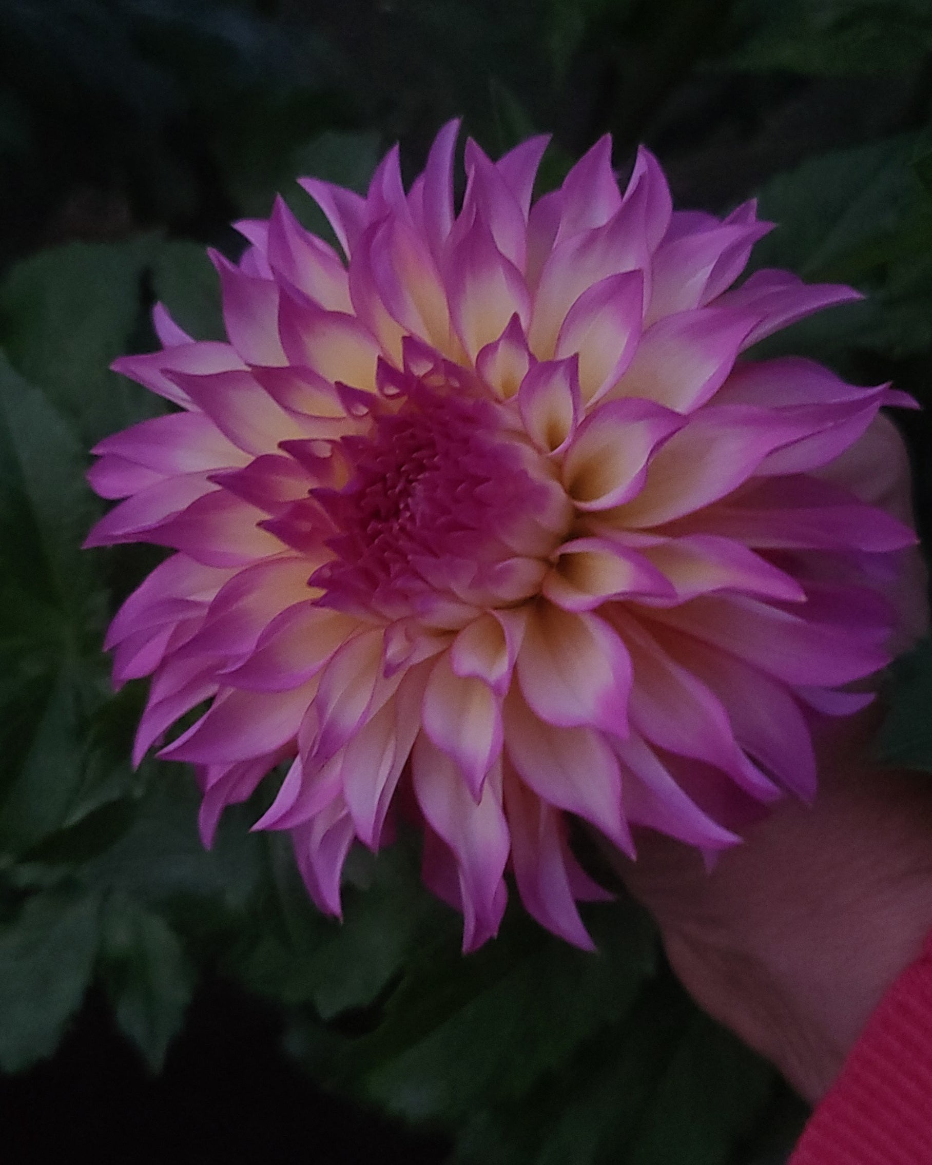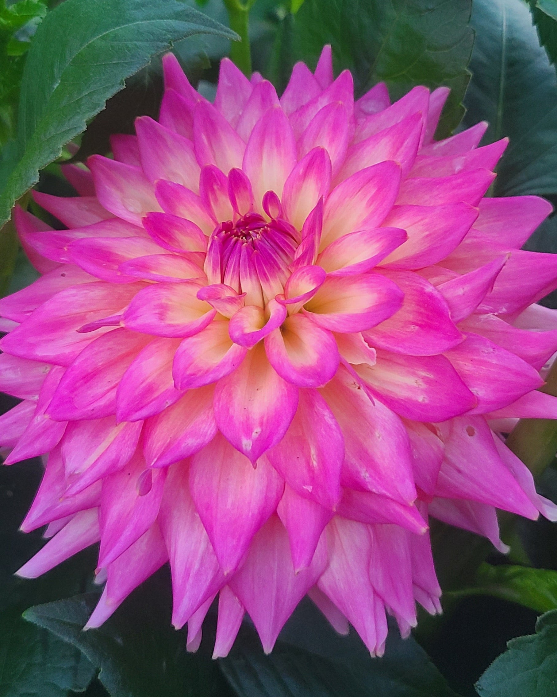 Pretty creamy white centers with soft pink ends. Informal decorative type, size B 5-6" flower. An abundantly flowering beauty.