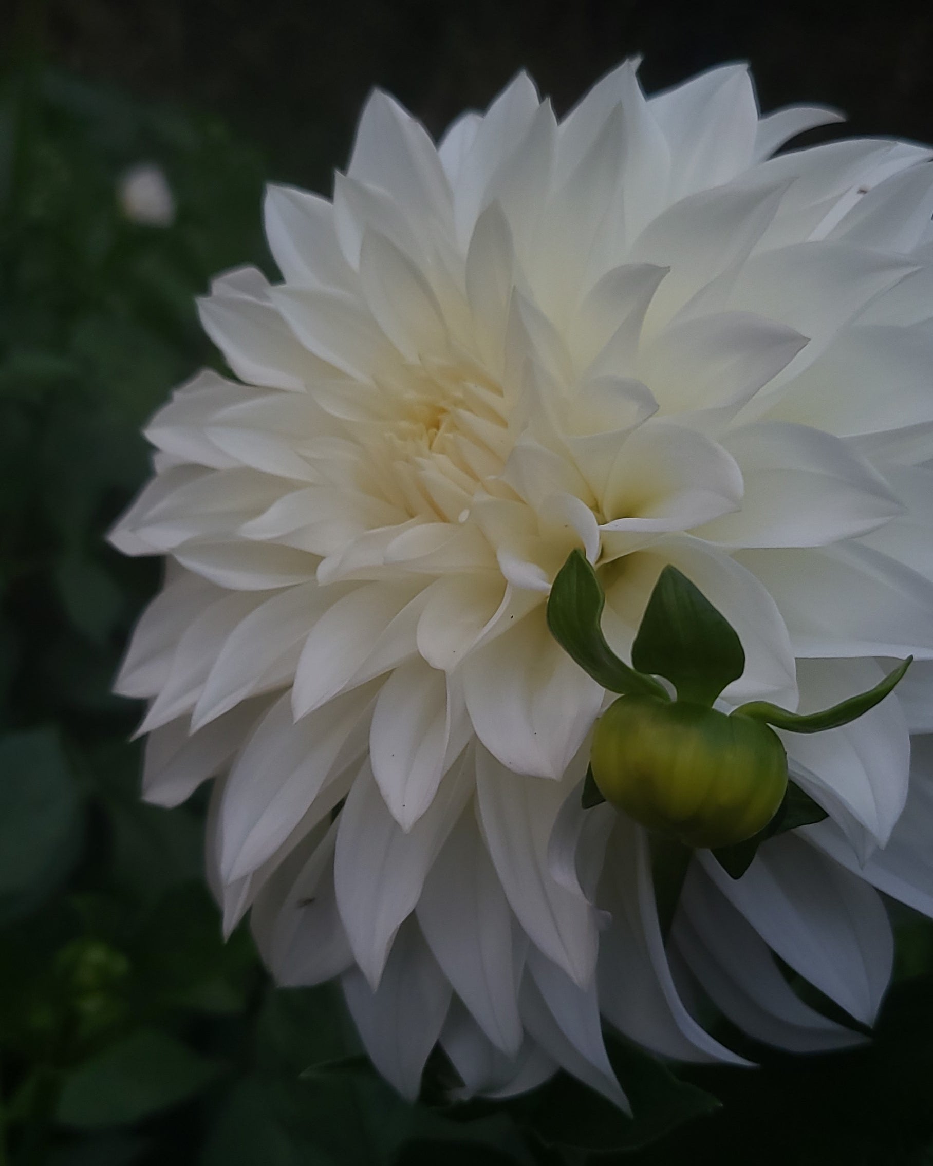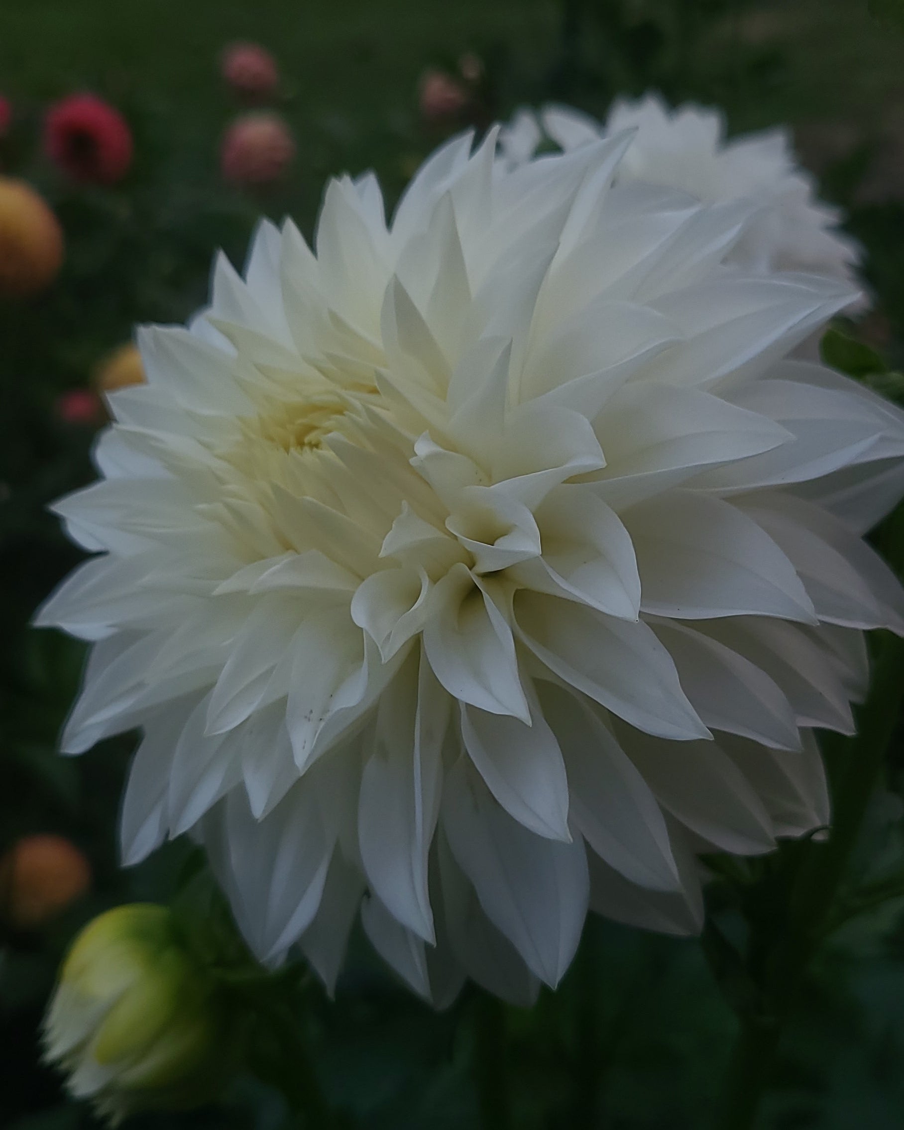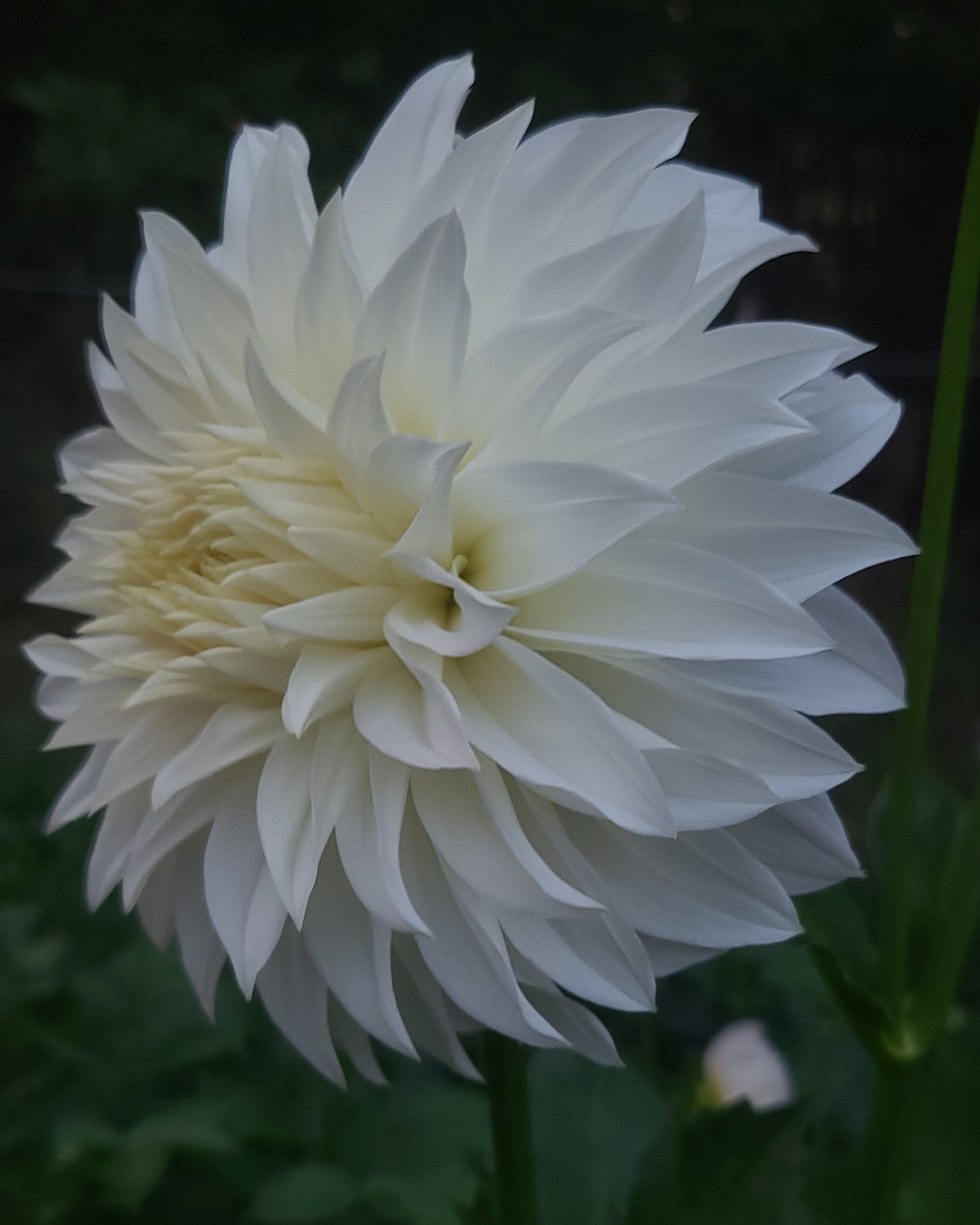 This bright white formal decorative beauty sometimes has just a blush of pink. This is easily my favorite white. 6-8" blooms atop sturdy stems. If I could grow only 1 white dahlia, this would be the one.