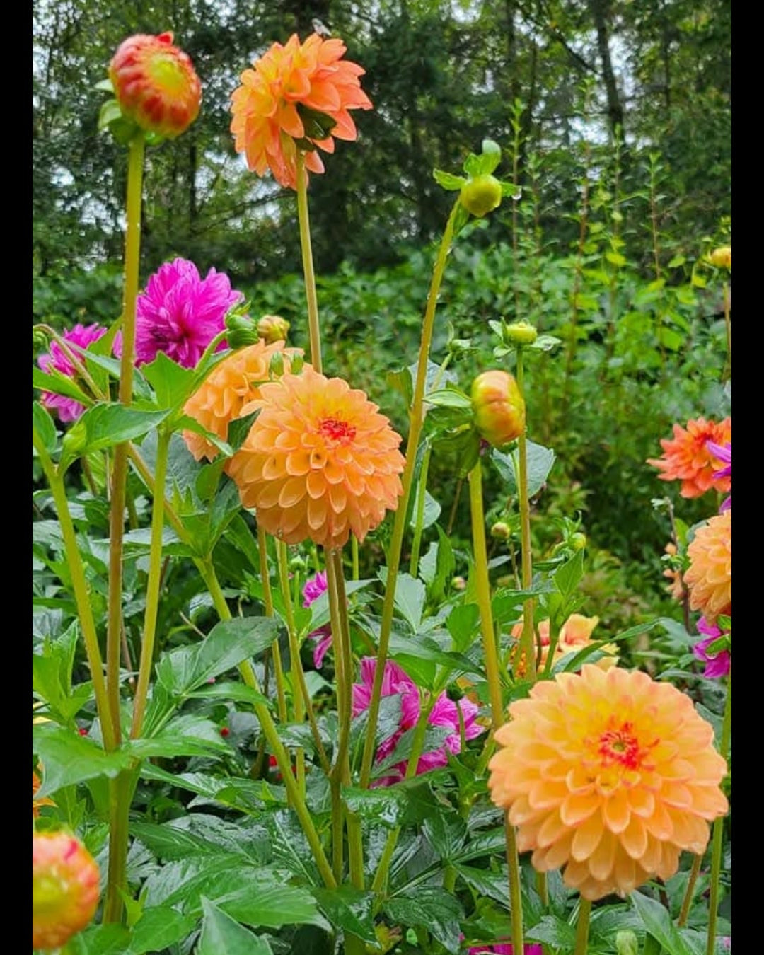 Very pretty tangerine orange-yellow tones in this ball type dahlia. Mingus dahlias are among my favorite varieties.