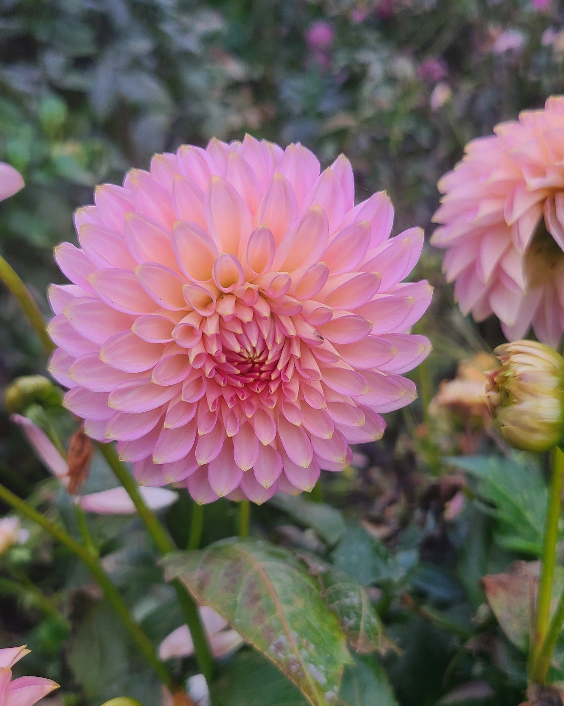 This is the variety that started it all. No, not growing dahlias, I had been growing them for many years. No, this was the variety that taught me what a unicorn was, and why, sometimes, it is absolutely worth it to go in search of a variety you "must have." A friend brought this one to me in a pot and said "Do you have this one?" She gave it to me. All I can say is, "WOW!" I really love it! A light pink-lavender formal decorative with distinctive gold tips on the petals, it flowers freely, grows an average height, and is still just stunning to see in my garden. It will change base color to much lighter pink in the cool fall weather. Get your gateway dahlia now!